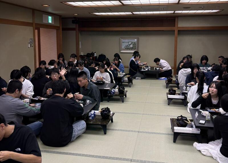 みんな元気です。待ちきれない様子で早々と関西グループ別自主研修に出発して行きました。