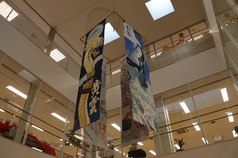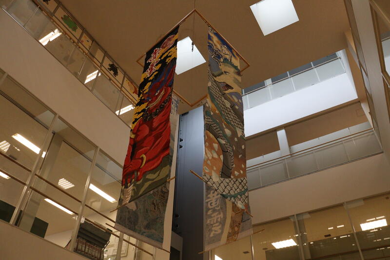 士別市生涯学習情報センターの市民ギャラリー吹抜にて、今年度の翔雲祭の雲隊旗を展示しております。是非、ご覧になっていただければ幸いです。